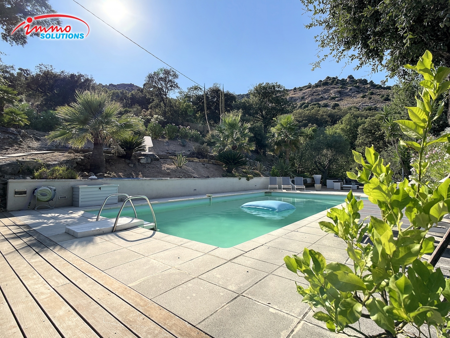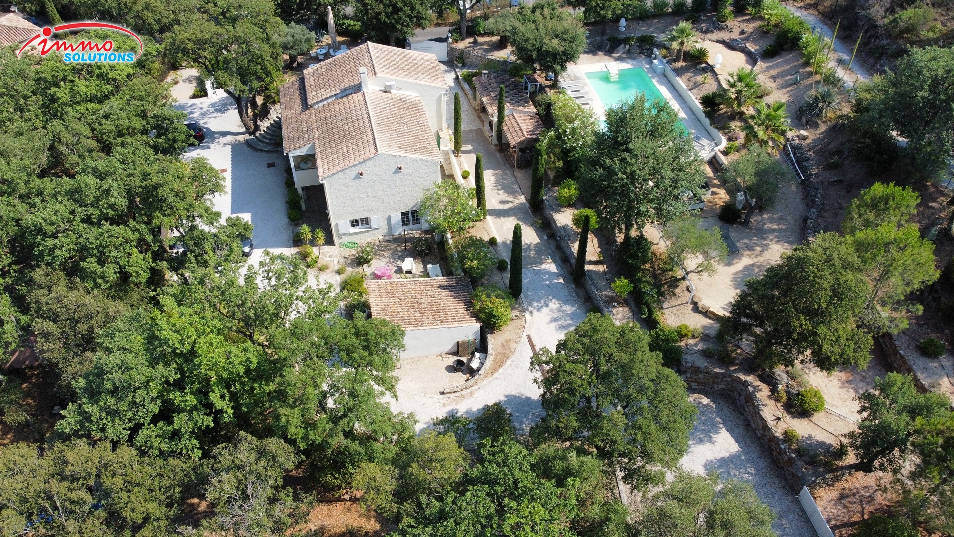 piscine chauffée, nombreuses terrasses, cuisine d'été avec barbecue, un boulodrome, un garage et plusieurs places de parking.