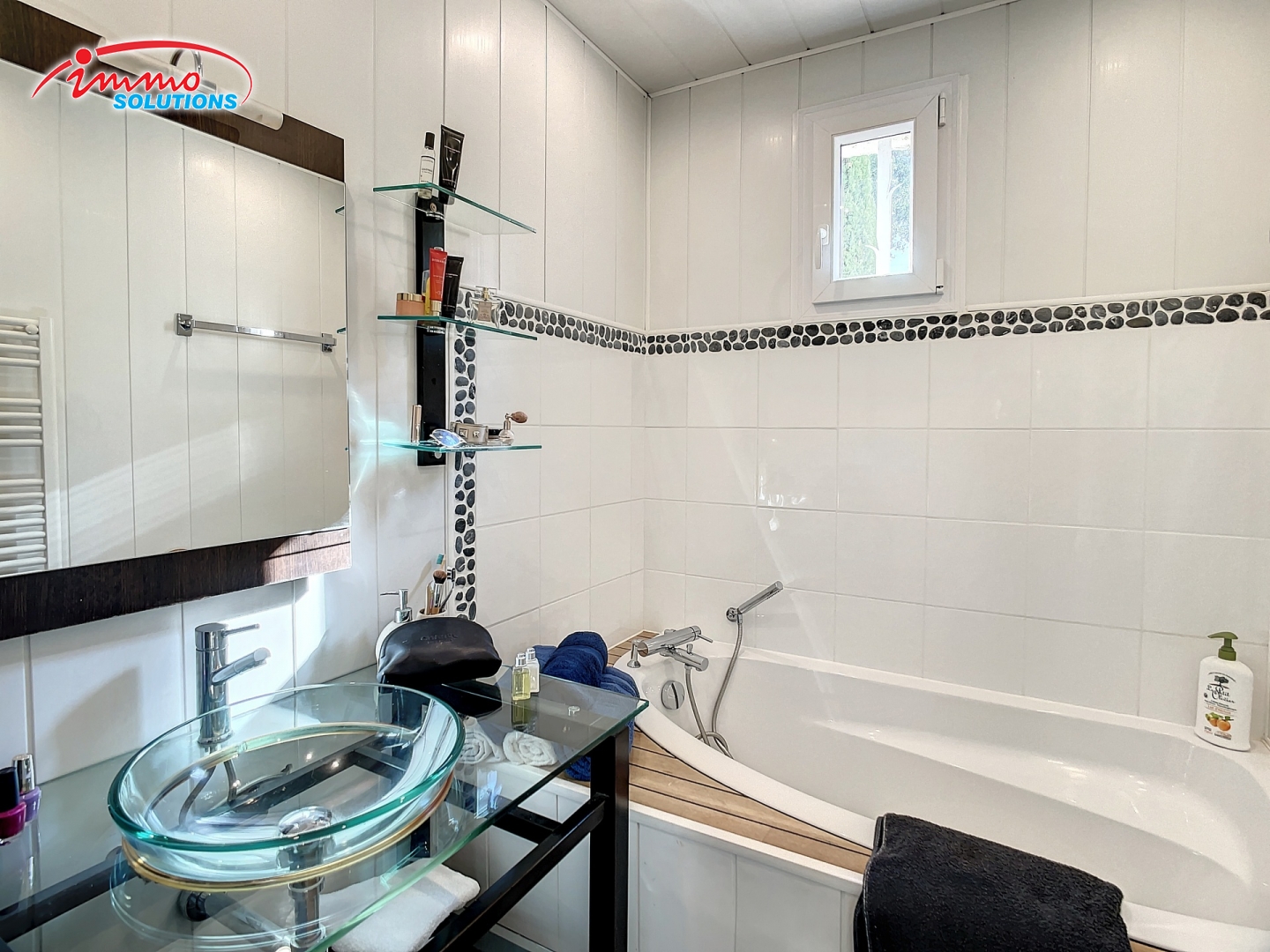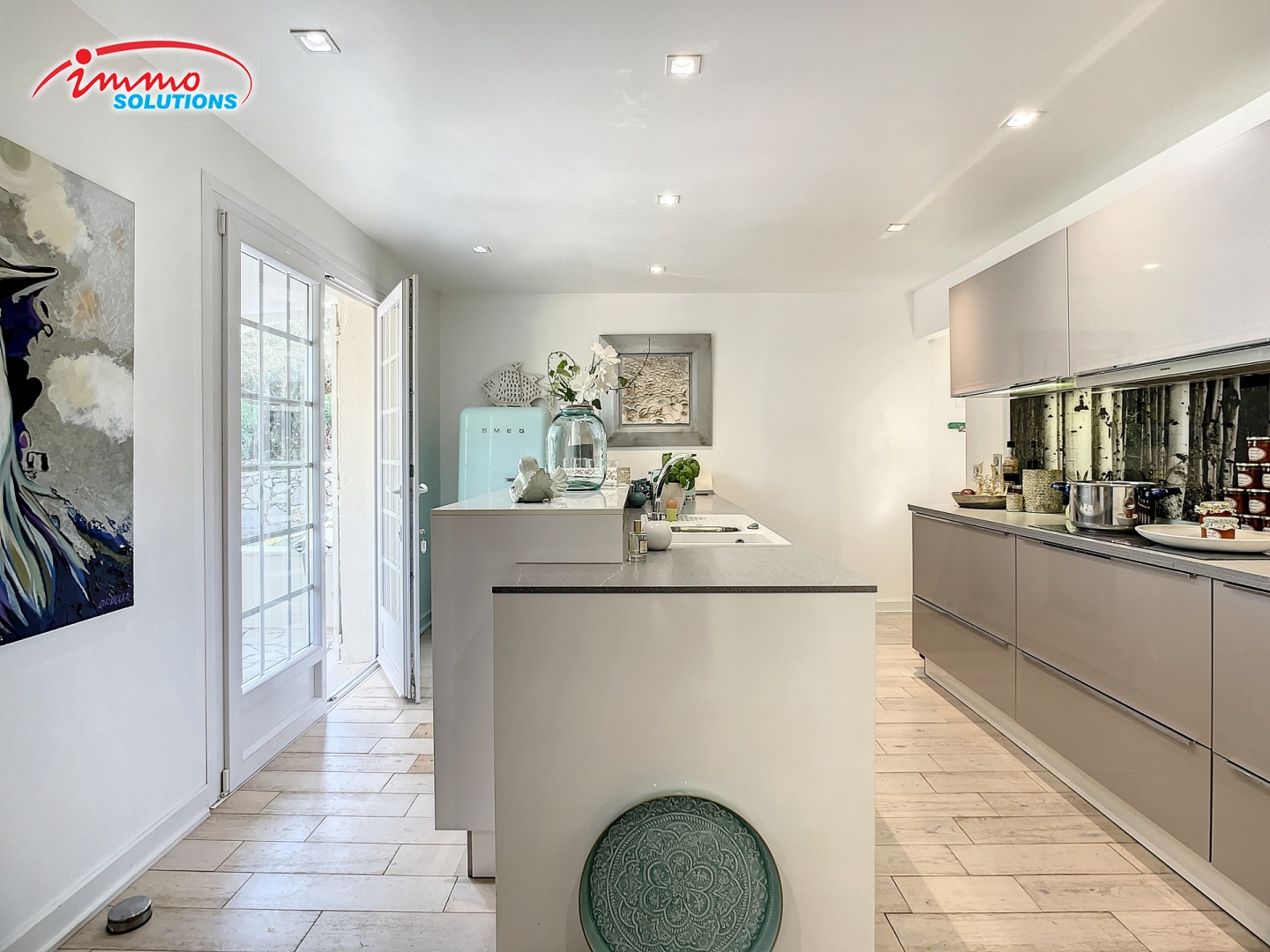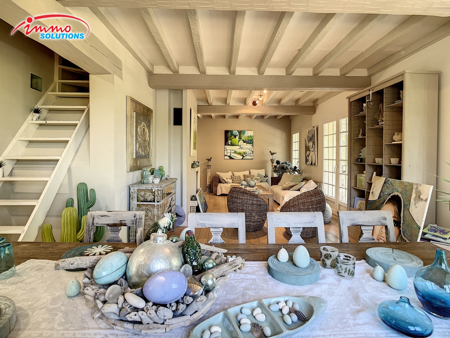 A l'étage un bel espace de vie avec une cuisine entièrement aménagée et équipée, 2 chambres, une salle de bain, une salle d'eau et une pièce supplémentaire pouvant servir de bureau ou de chambre.
