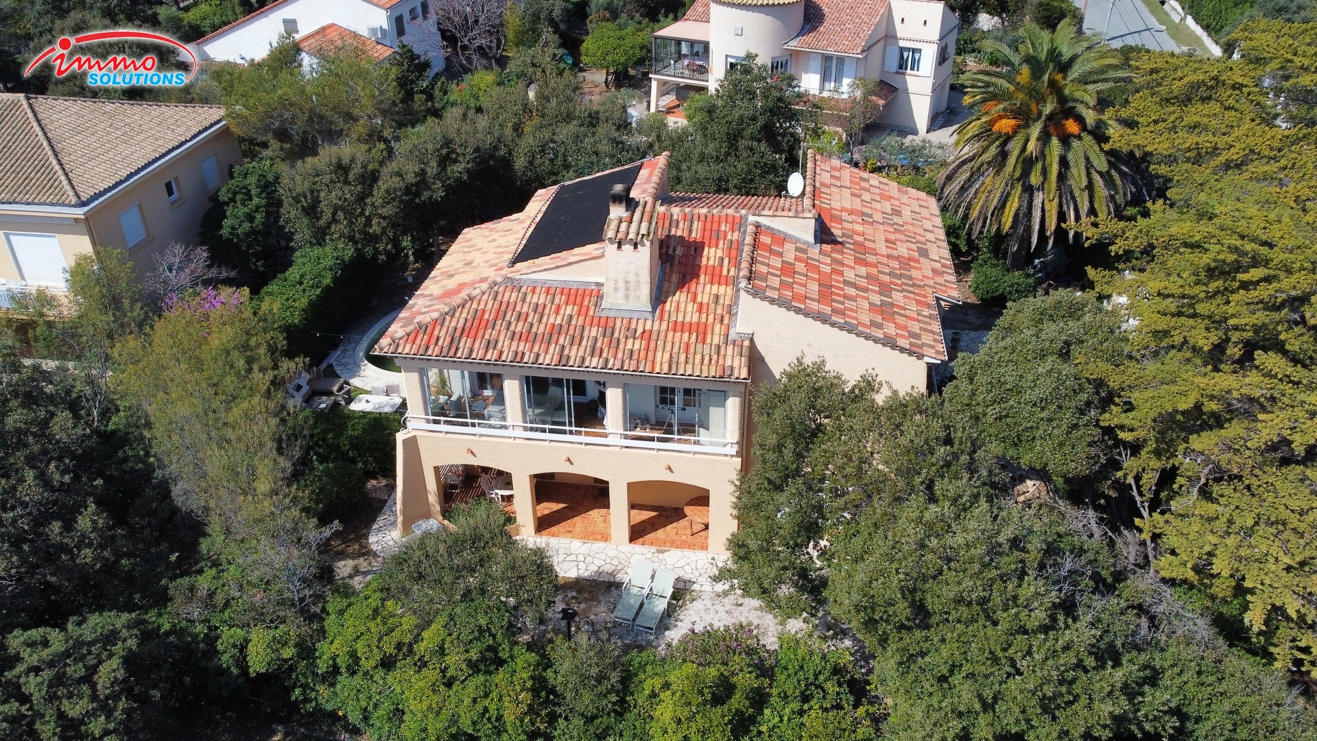 Elle se compose d'un séjour/salle à manger ouvrant sur une terrasse avec vue mer, cuisine indépendante, salle de bains, trois chambres dont une avec sa salle d'eau. Deux pièces indépendantes en rez-de-jardin. Grande piscine forme libre. Garage et dépendances. Beaucoup de potentiel!