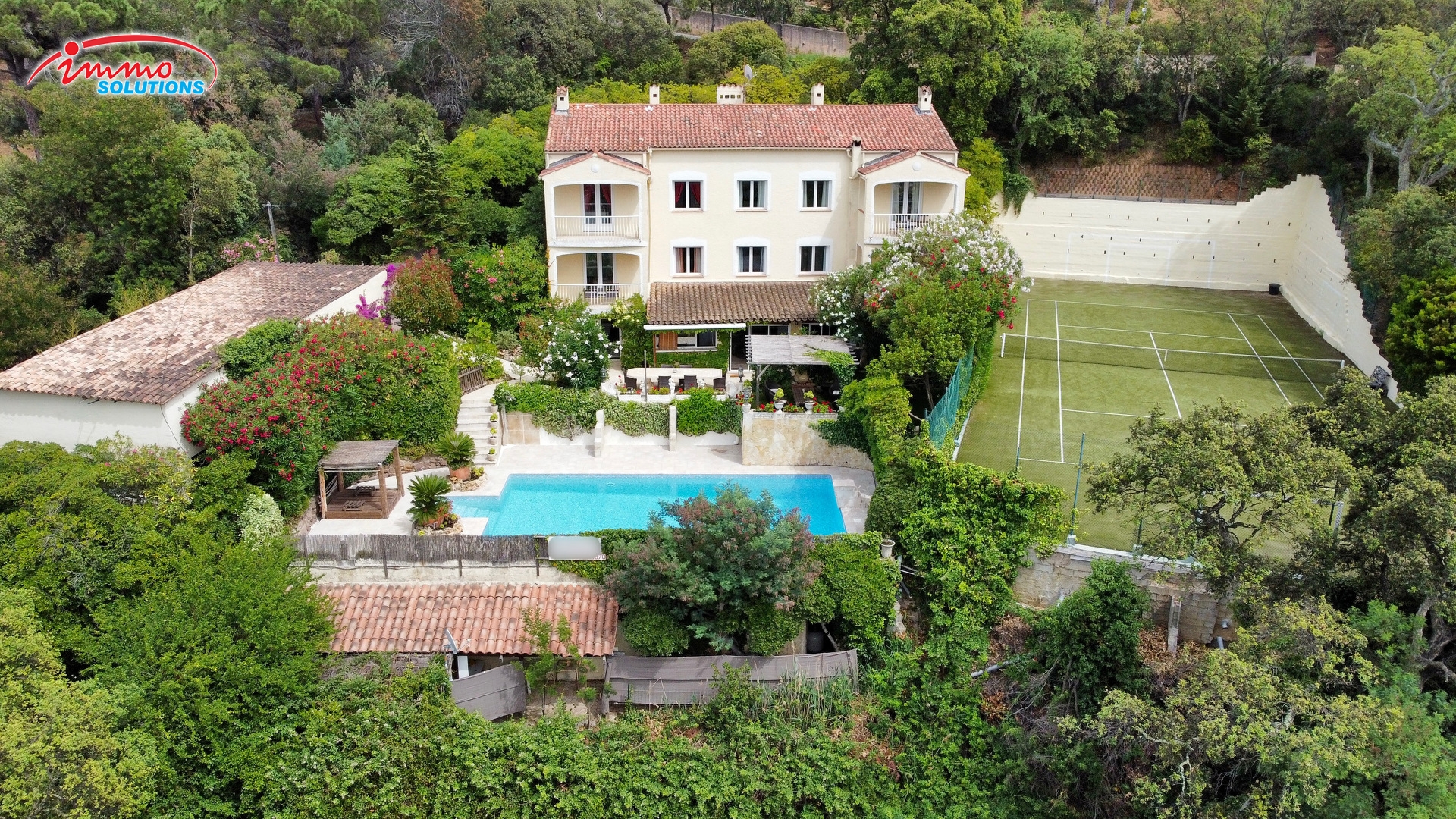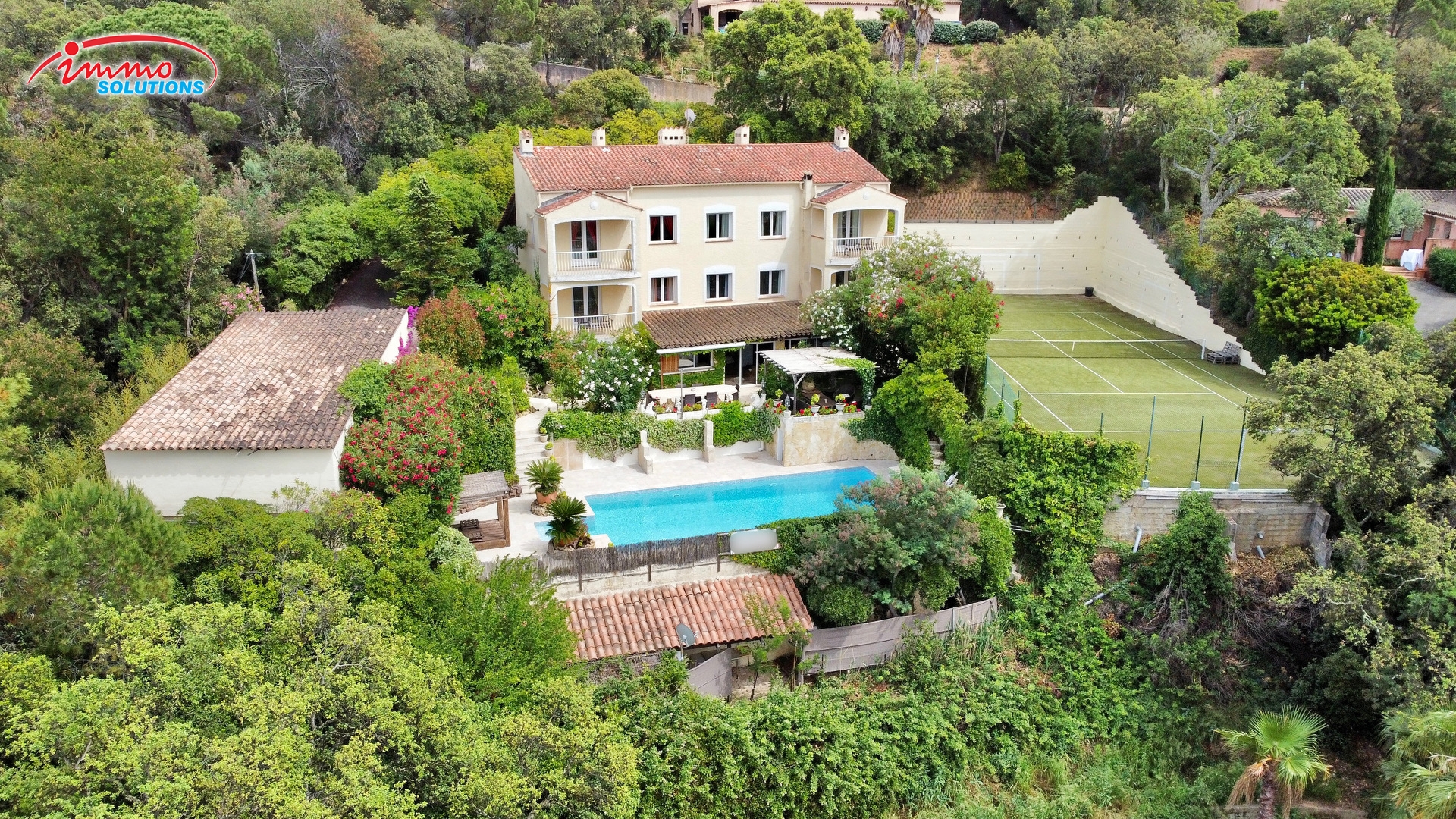 À vendre dans la petite ville de SAINTE MAXIME (83120) : maison de 350 m² et de 19 ares de terrain avec jardin. Elle offre huit chambres et une cuisine équipée. Elle bénéficie également d'une place de parking, de deux garages et de 2 terrasses. Disponible de suite.