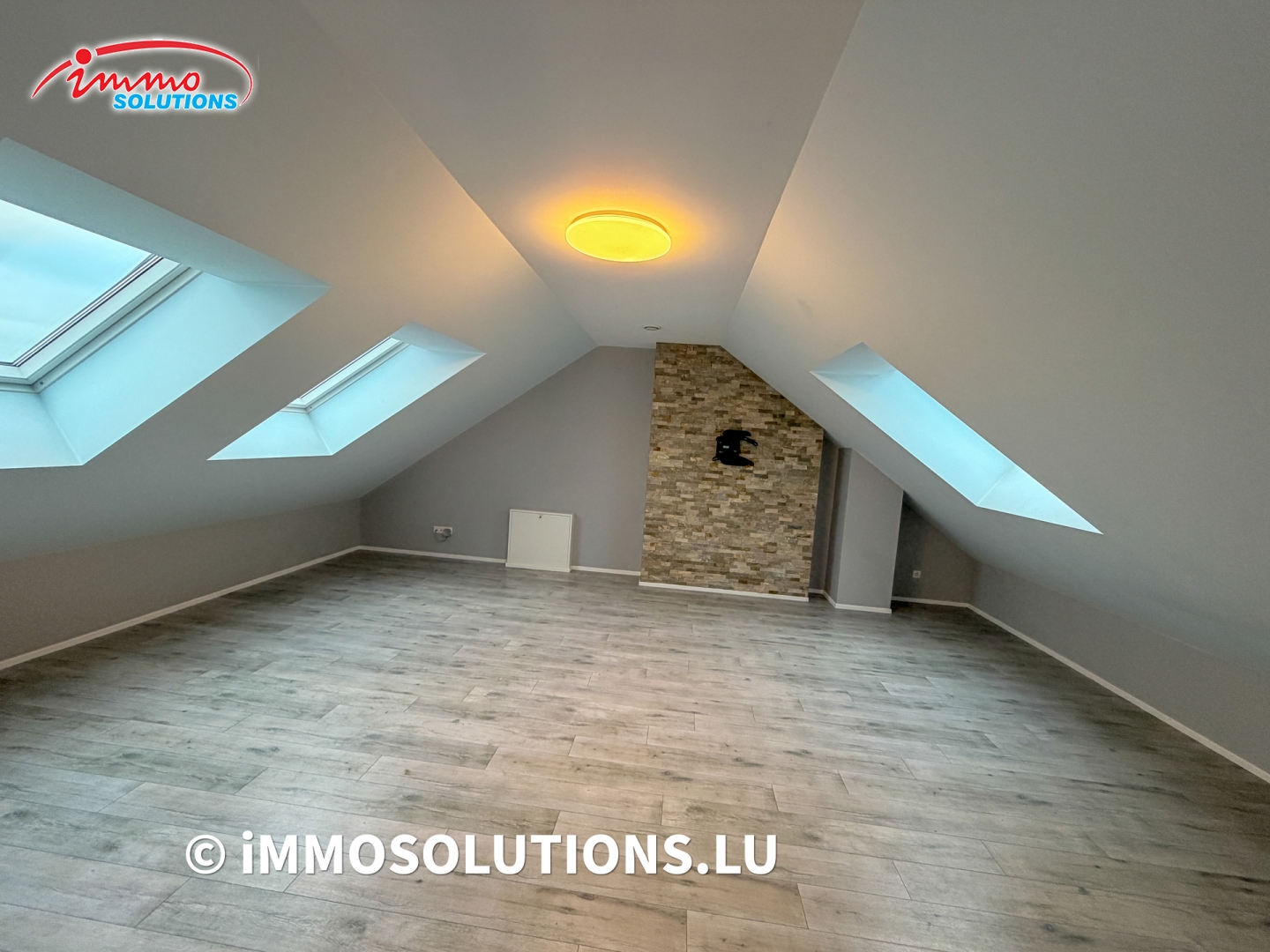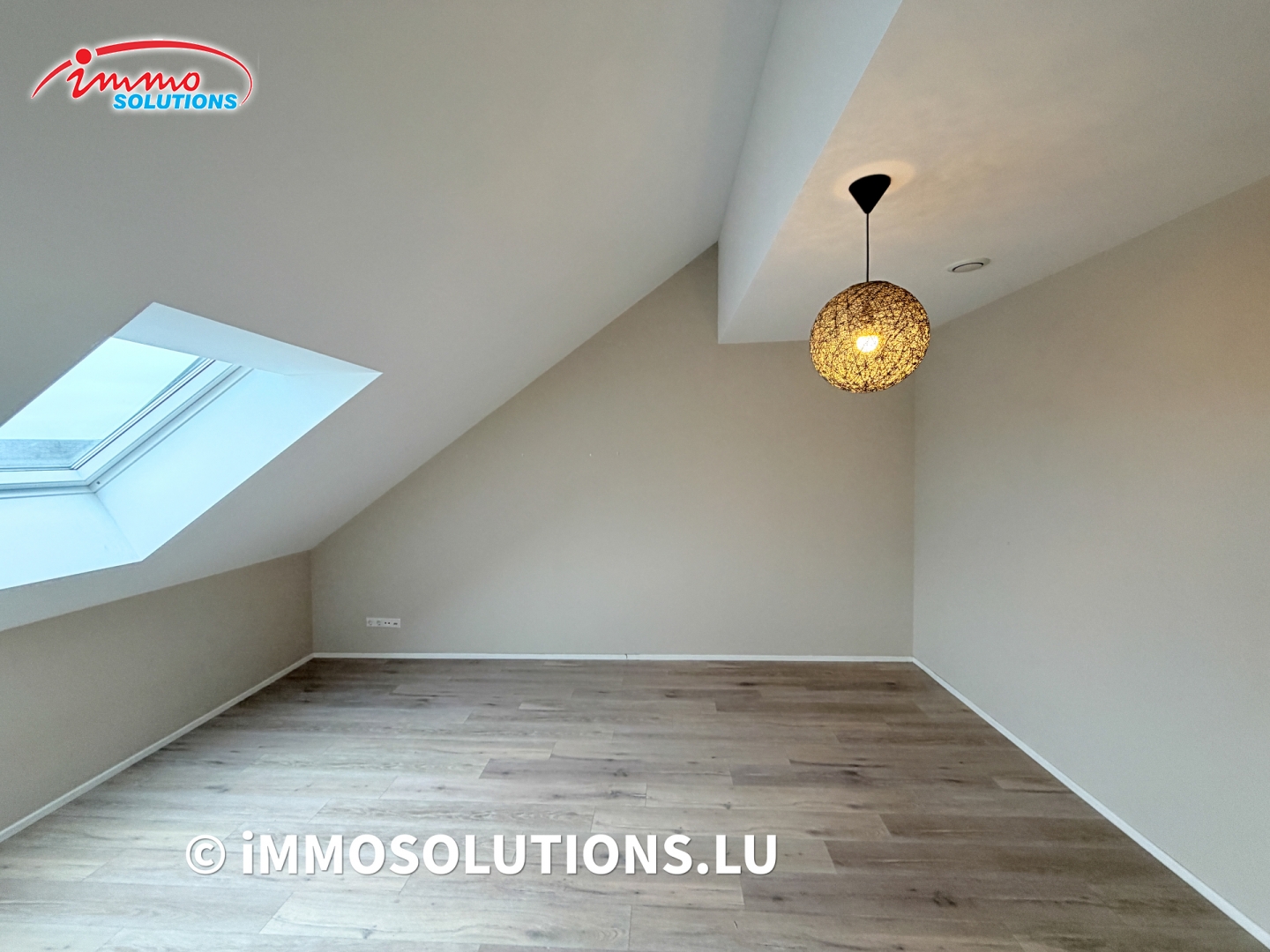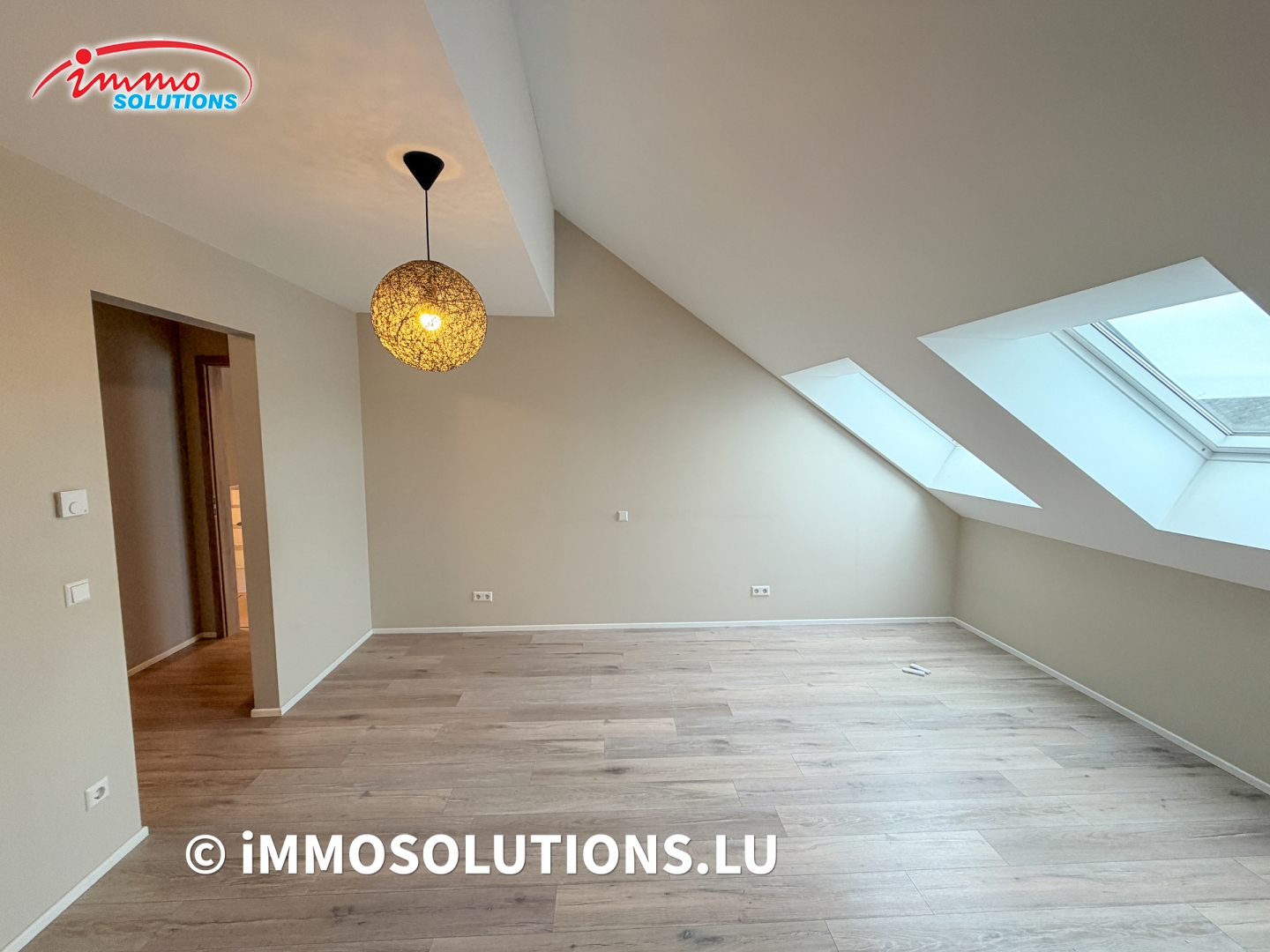 À Clémency (Kënzeg / Küntzig), village plein de charme de la commune de Käerjeng, dans le canton de Capellen, nous avons le plaisir de vous présenter en exclusivité ce superbe duplex contemporain, offrant une surface habitable de 135 m² (env. 160 m² au sol). Situé aux deuxième et troisième étages d'une maison bi-familiale récente, ce bien séduit par ses volumes généreux, sa luminosité remarquable et la qualité de ses finitions.