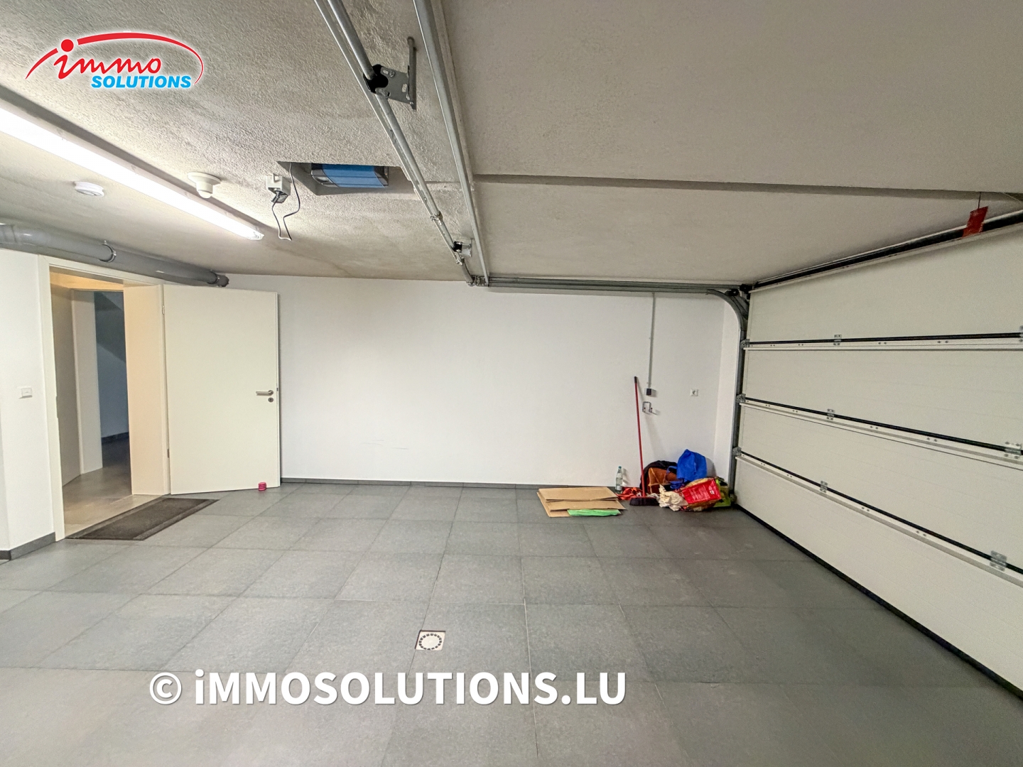 Au rez-de-chaussée, le bien dispose d'un garage fermé pour une voiture ainsi que d'un emplacement extérieur supplémentaire devant le garage, permettant de stationner deux petits véhicules. Une vaste cave complète l'ensemble et donne accès à une belle terrasse privée ainsi qu'à un magnifique jardin privatif d'environ 5 ares, véritable havre de paix.
