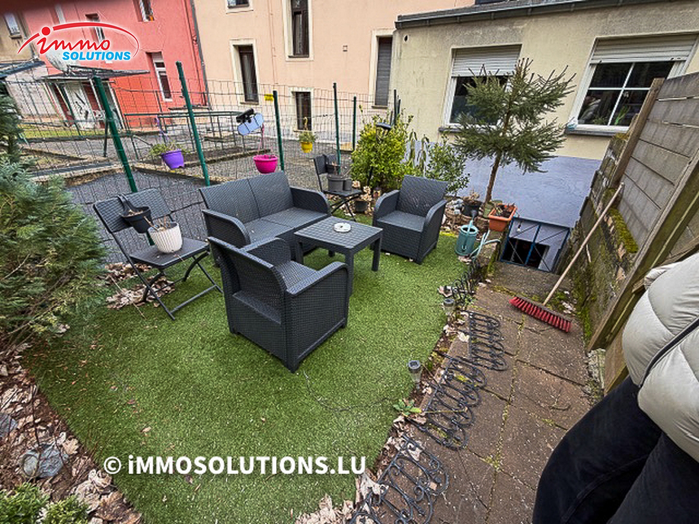 À l'extérieur, une cour avec terrasse et jardin privatif d'environ 12,50 m² vous permettra de profiter pleinement des beaux jours, que ce soit pour vos moments de détente ou vos repas en plein air.