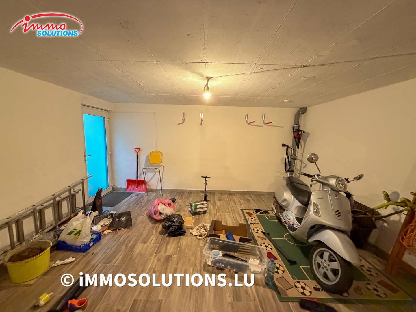 Au rez-de-chaussée, le bien dispose d'un garage fermé pour une voiture ainsi que d'un emplacement extérieur supplémentaire devant le garage, permettant de stationner deux petits véhicules. Une vaste cave complète l'ensemble et donne accès à une belle terrasse privée ainsi qu'à un magnifique jardin privatif d'environ 5 ares, véritable havre de paix.