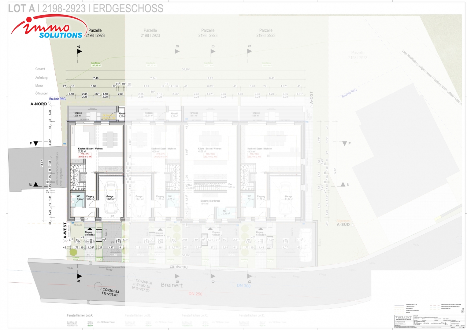 À l'est du Luxembourg, dans le canton de Grevenmacher, le charmant hameau de Breinert, section de la commune de Biwer, accueille un nouveau projet résidentiel de 4 maisons mitoyennes, dont 2 sont déjà vendues. Niché au cœur de la campagne luxembourgeoise, ce village paisible offre un cadre de vie authentique et verdoyant, tout en restant parfaitement connecté : 20 minutes suffisent pour rejoindre Luxembourg-Ville, 15 minutes pour atteindre Grevenmacher avec ses commerces et ses agréables promenades le long de la Moselle, 10 minutes pour Junglinster et son Lënster Lycée – International School ainsi que sa zone commerciale, et l'on se trouve également à proximité de Betzdorf, siège de SES. L'accès à l'autoroute est à seulement 9 minutes.