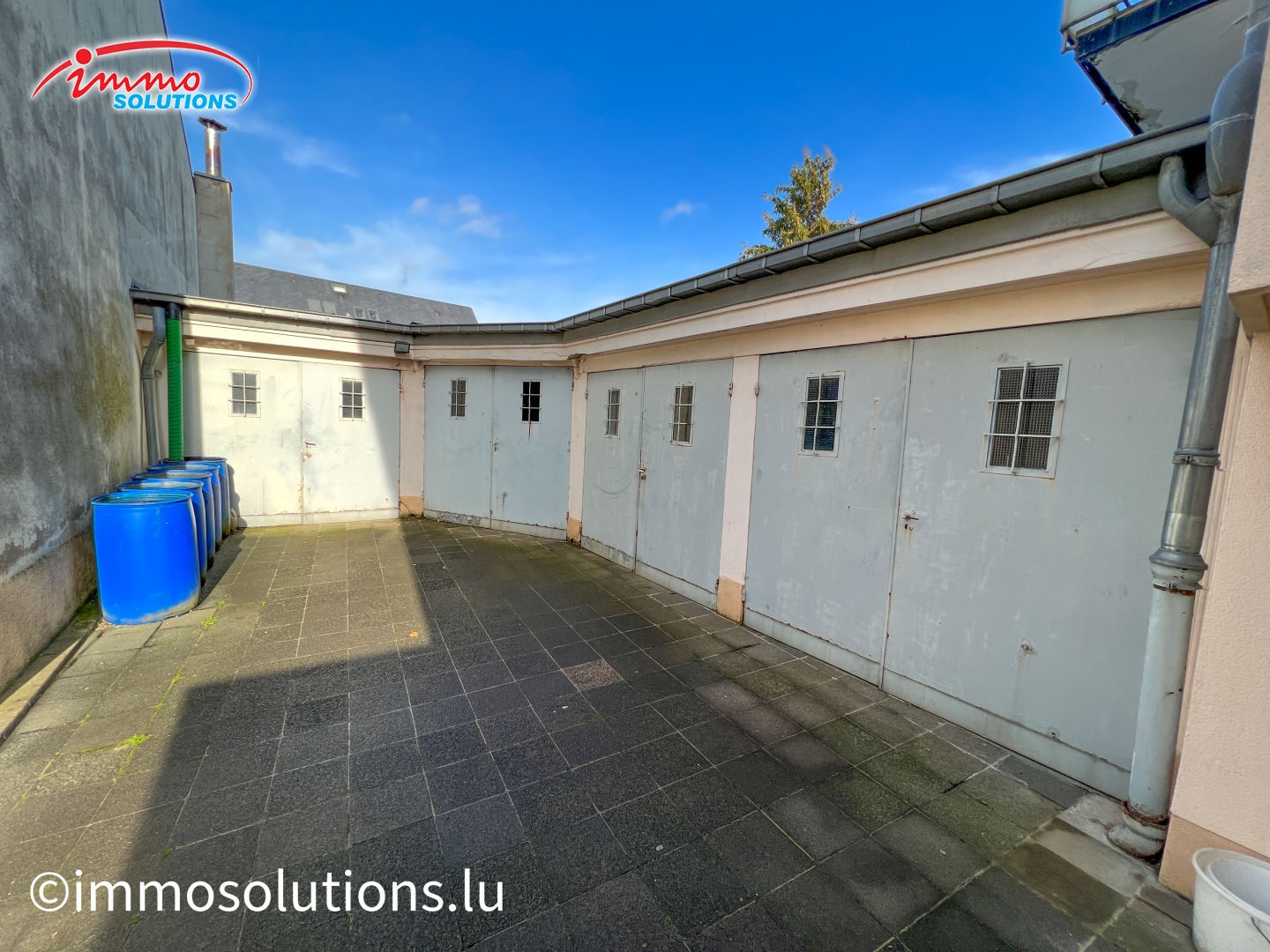 A l'arrière de la maison se situent quatre garages de 18 à 30m2 d'une hauteur sous plafond de 2.50m. A voir absolument! Grand potentiel.