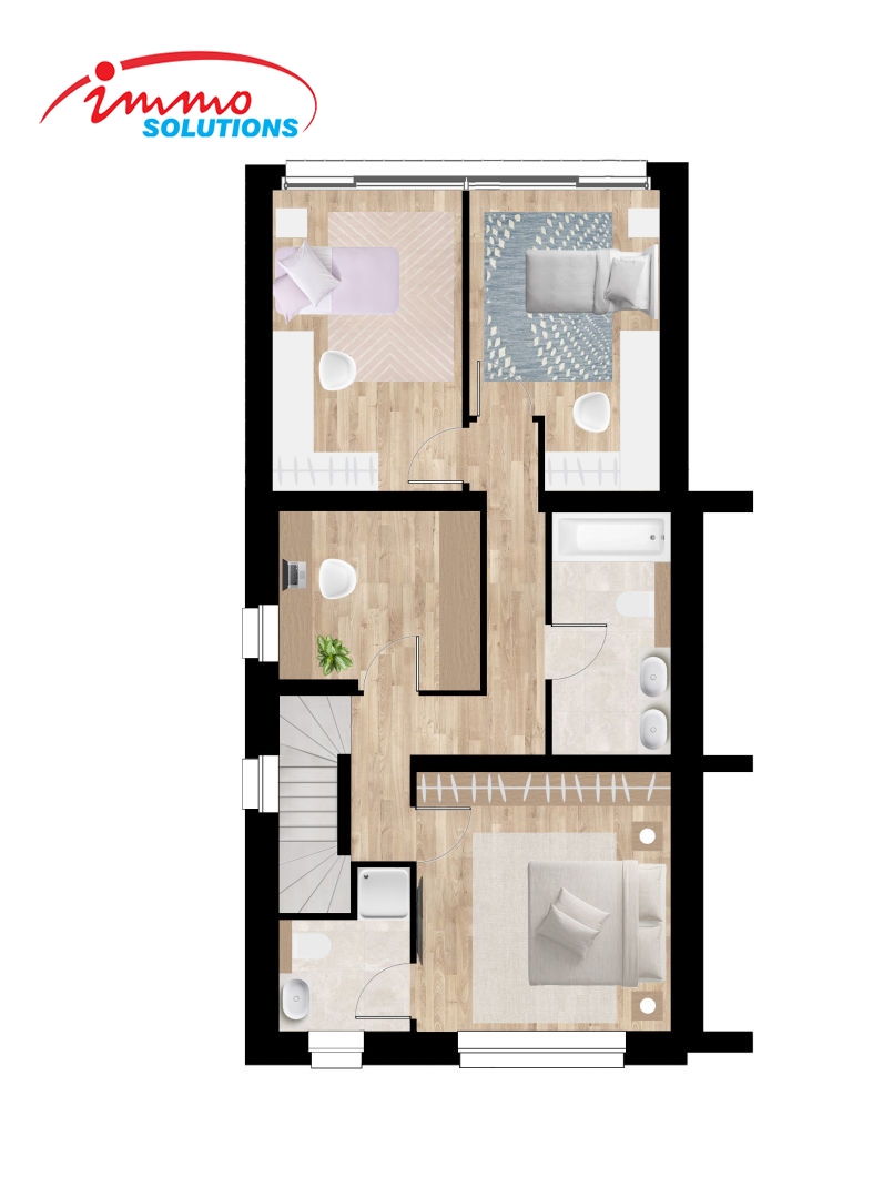 au 2ième étage: une suite parentale avec dressing et SDD, deux chambres à coucher, un bureau et une salle de bain.