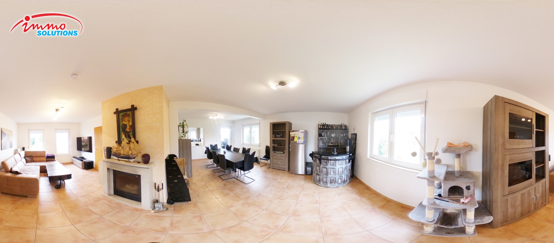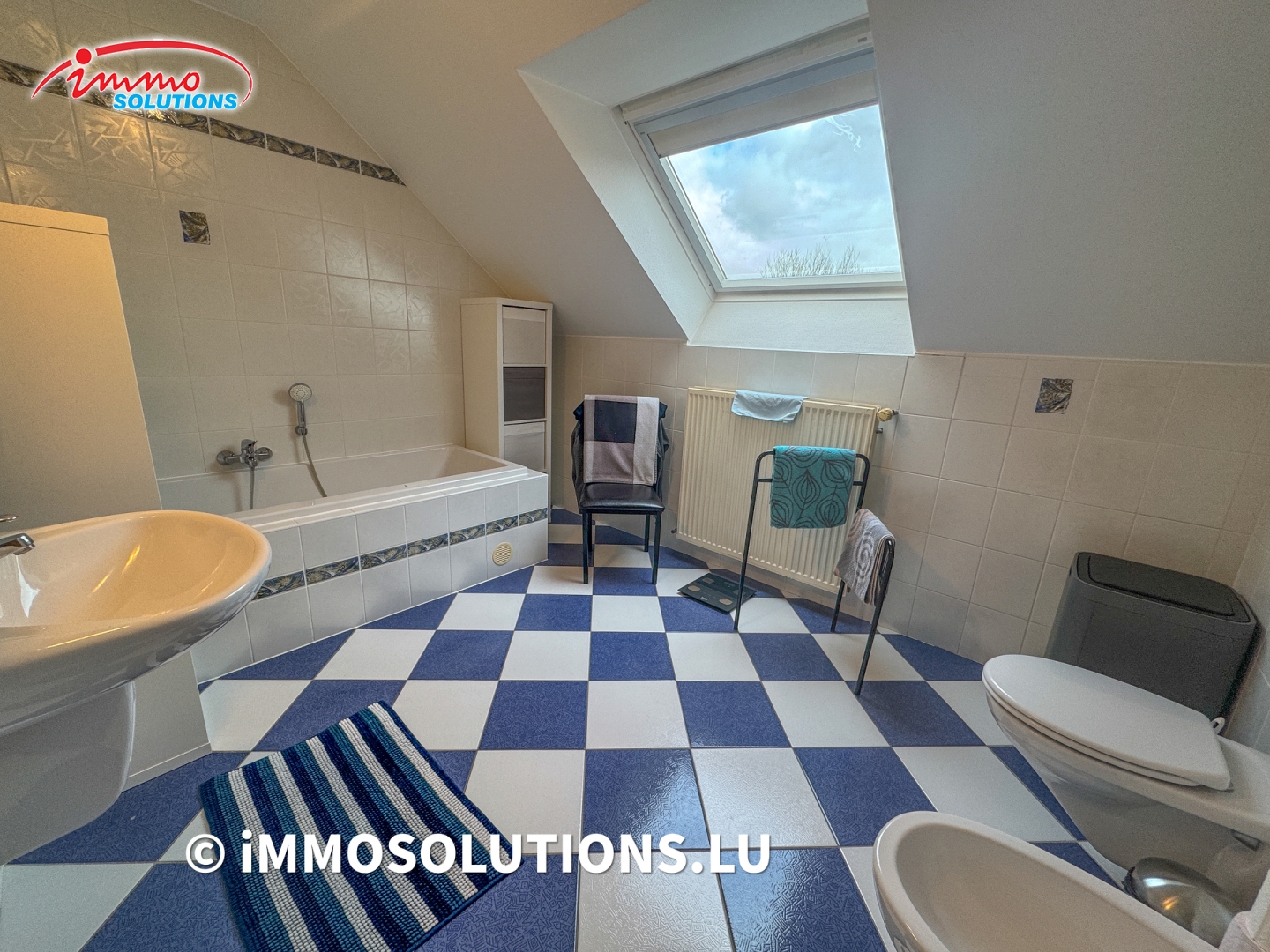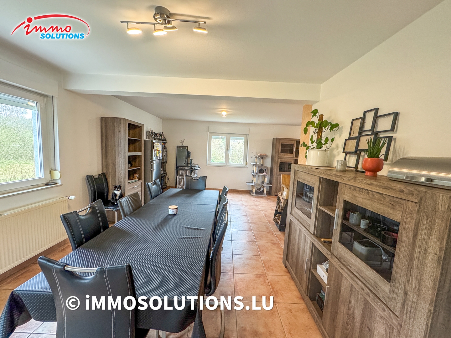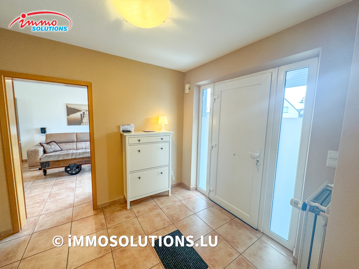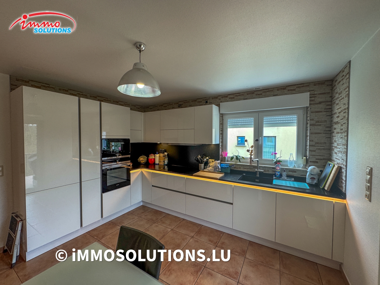 Très belle maison individuelle datant de 2001, offrant environ 150 m² de surface habitable, située sur un terrain de 6.86 ares. Le grand hall d'entrée lumineux mène, sur la gauche, à un spacieux salon avec cheminée et une salle à manger généreuse. De cette dernière, on peut admirer une belle cuisine moderne. La cuisine comprend également un espace repas avec une table, idéale pour le petit-déjeuner ou les repas en famille.