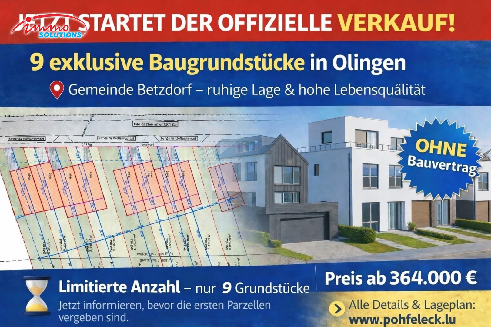 RÉSERVÉ! LOT 4 - Le projet « Auf Pohfeleck » concerne exclusivement la vente de terrains à bâtir – sans contrat de construction. L'acquéreur reste totalement libre dans le choix de son entreprise de construction. Toutefois, les plans sont vendus avec les terrains. Le projet prévoit la construction de 9 maisons unifamiliales, dont une maison individuelle indépendante (LOT 9).